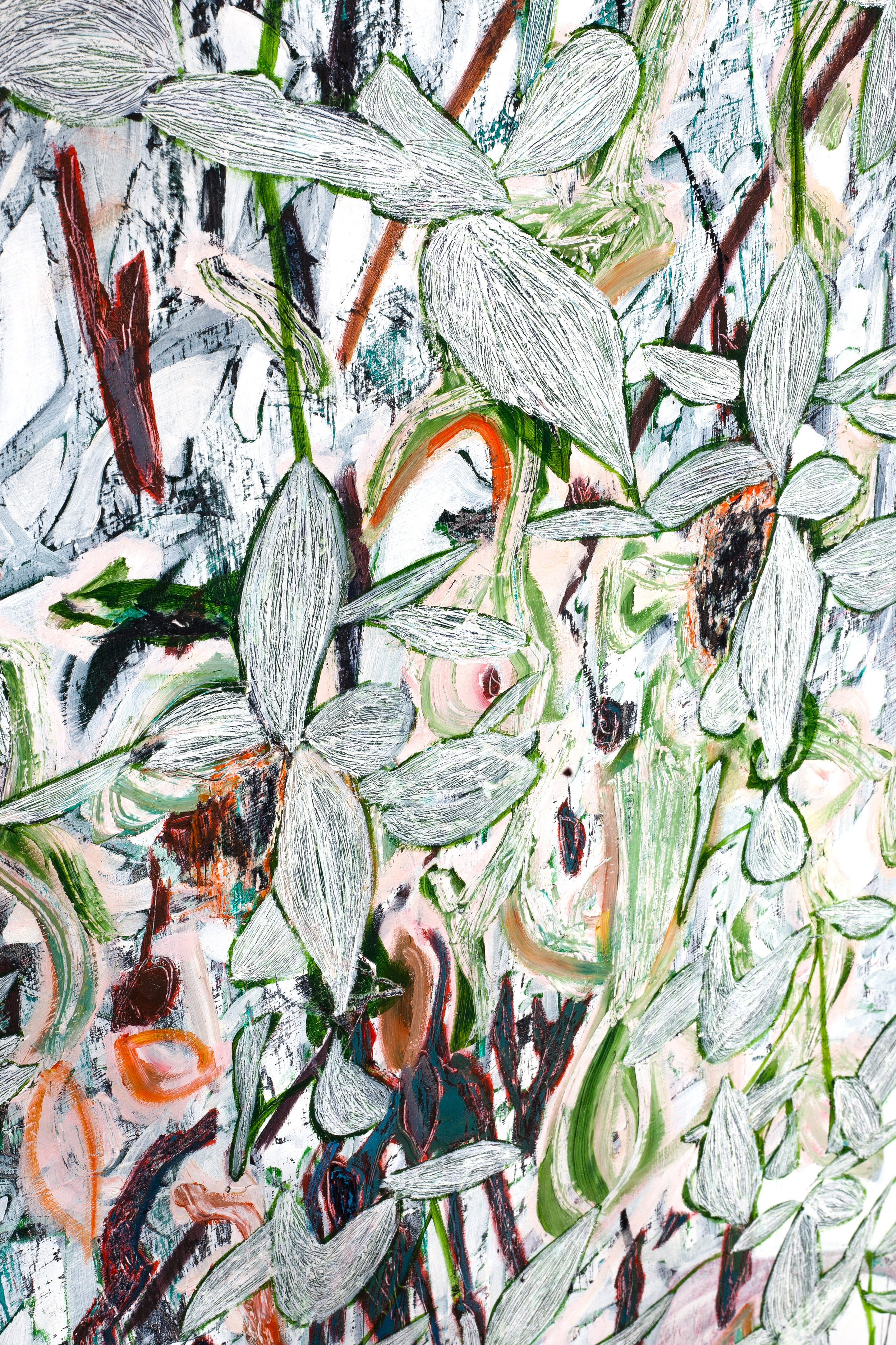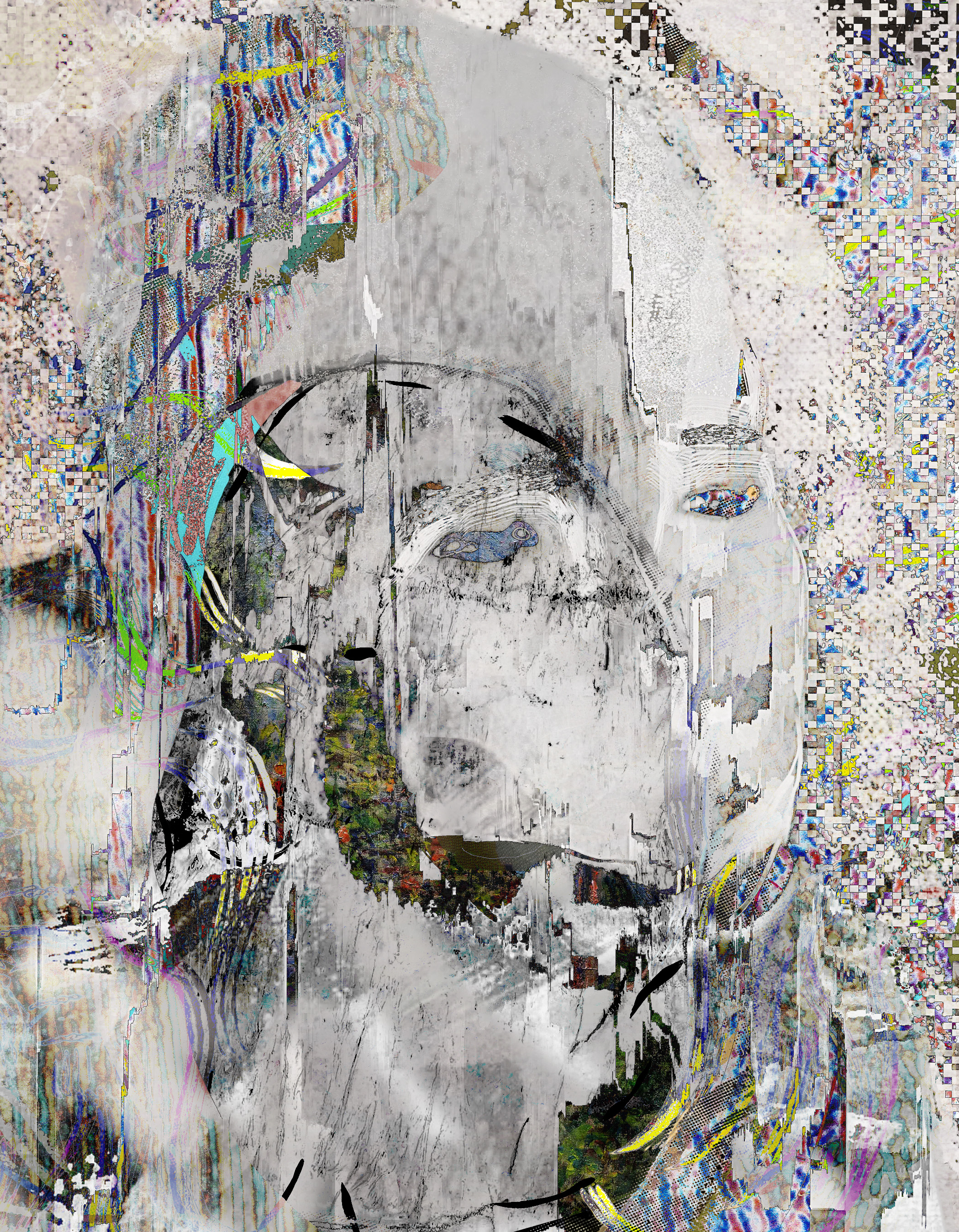 A collection including a leading 72 × 48 inch oil and acrylic on canvas with a selection of 'post' iterations edited from process files.